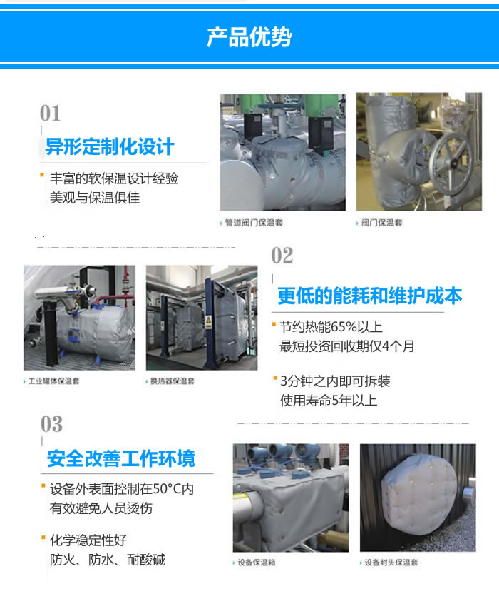 柔性防火罩特為所需保護(hù)的零件、執(zhí)行器、閥門(mén)、儲(chǔ)槽和管道的形狀而專門(mén)設(shè)計(jì)和量身定做。可為控制器、閥桿、鋼框架和按鈕建立凹進(jìn)處和孔洞;防火罩為特殊定制,可根據(jù)客戶需求在所需位置開(kāi)設(shè)穿過(guò)電源線的通孔,且在安裝前可隨時(shí)進(jìn)行修改。防火罩外觀可采用不同顏色織物制作,以便在系統(tǒng)不同區(qū)域內(nèi)區(qū)分自動(dòng)操作和方便操作人員在緊急狀況下操作。
